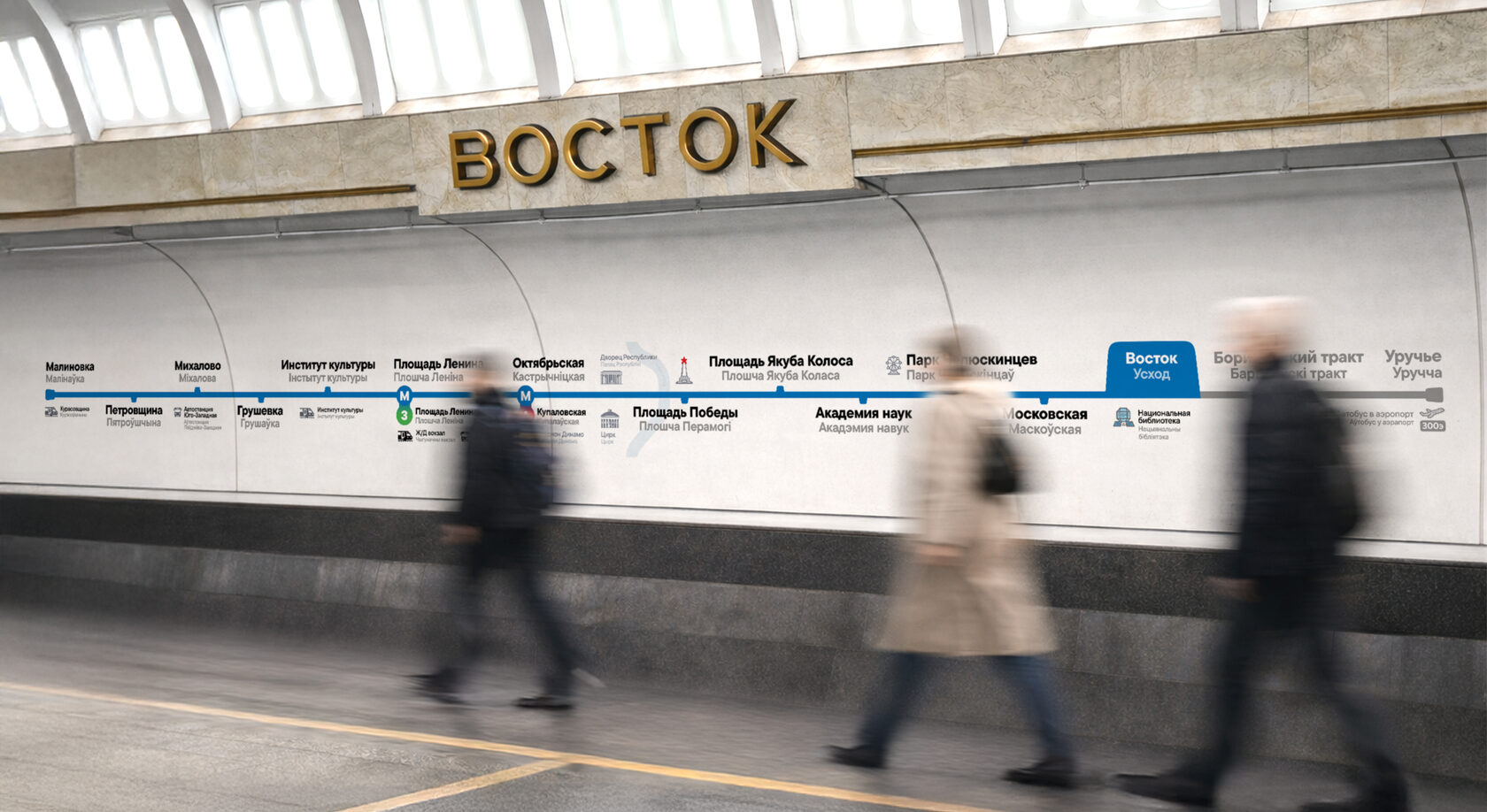 Мы в бюро любим минский метрополитен — он красивый и масштабный, но местами не самый удобный. Поэтому считаем, что ему нужно обновление.